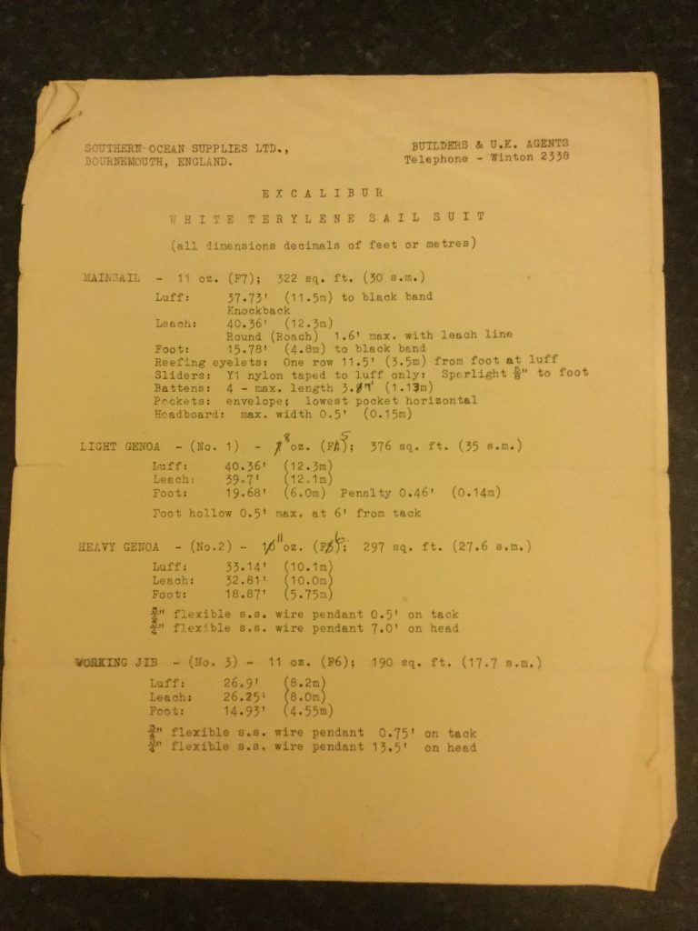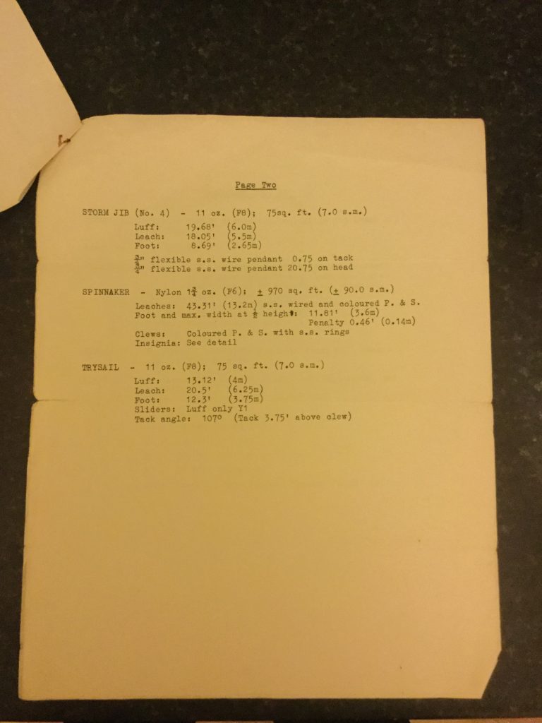 These are copies of the original documents belonging to ‘Spingo’. They contain all measurements for a complete set of sails: